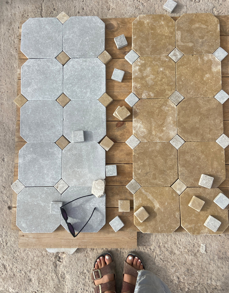 Our Moroccan Limestone is organic, tumbled stone sourced directly from the earth of Morocco; each piece connects to the land and ancient history